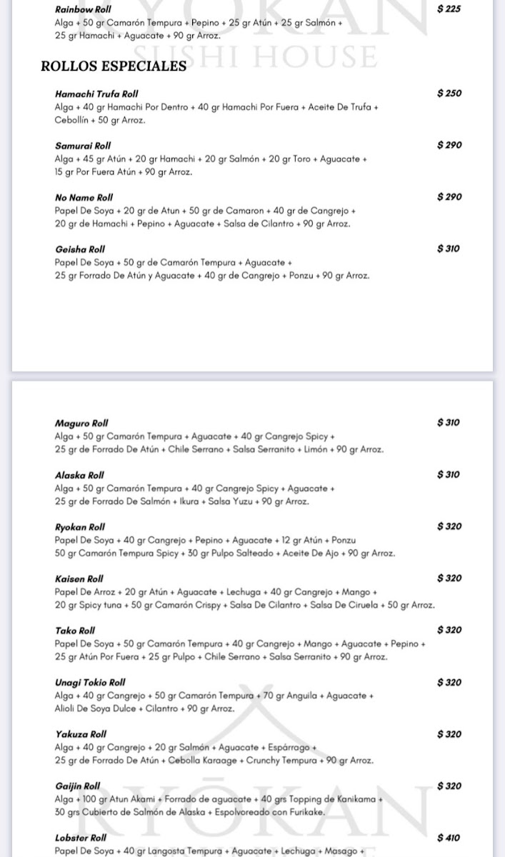 At Ryokan Sushi House, the menu offers a balanced blend of traditional Japanese flavors and contemporary sushi creations, making it a perfect choice for both casual meals and relaxed dining occasions. The selection ranges from comforting plates like Ramen de Miso and savory Gyozas to artfully crafted sushi rolls such as the Rainbow Roll and Yakuza Roll. These dishes fit seamlessly into an atmosphere that is warm and inviting, suited for enjoying a quiet dinner or celebrating the simple pleasure of good food.